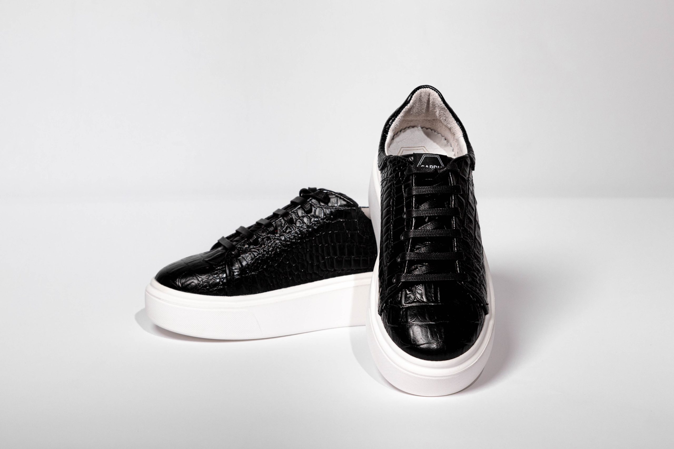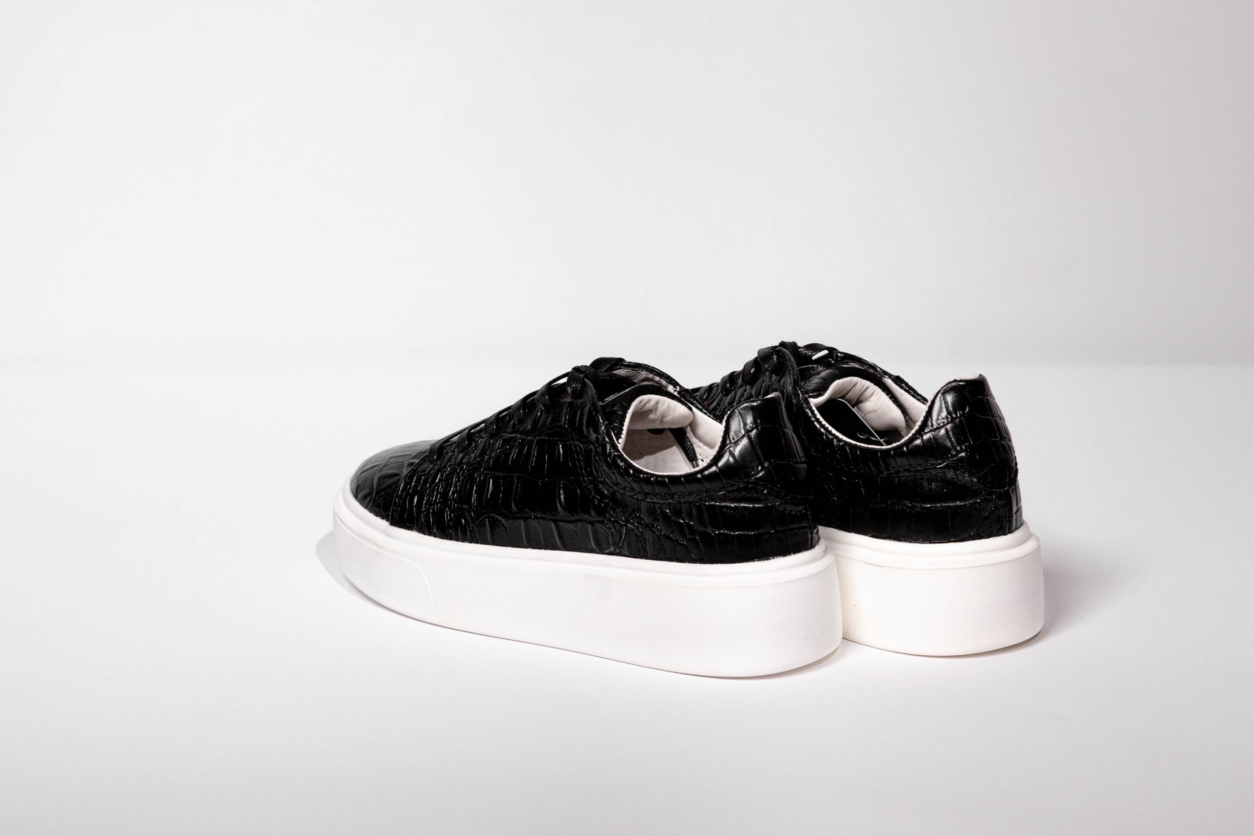 Low sneakers AM101/10 – Low-top sports shoes, made of glossy crocodile texture leather.