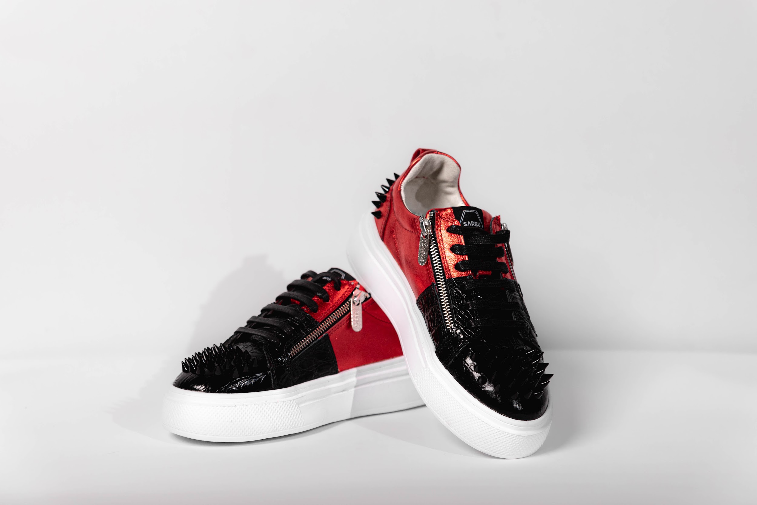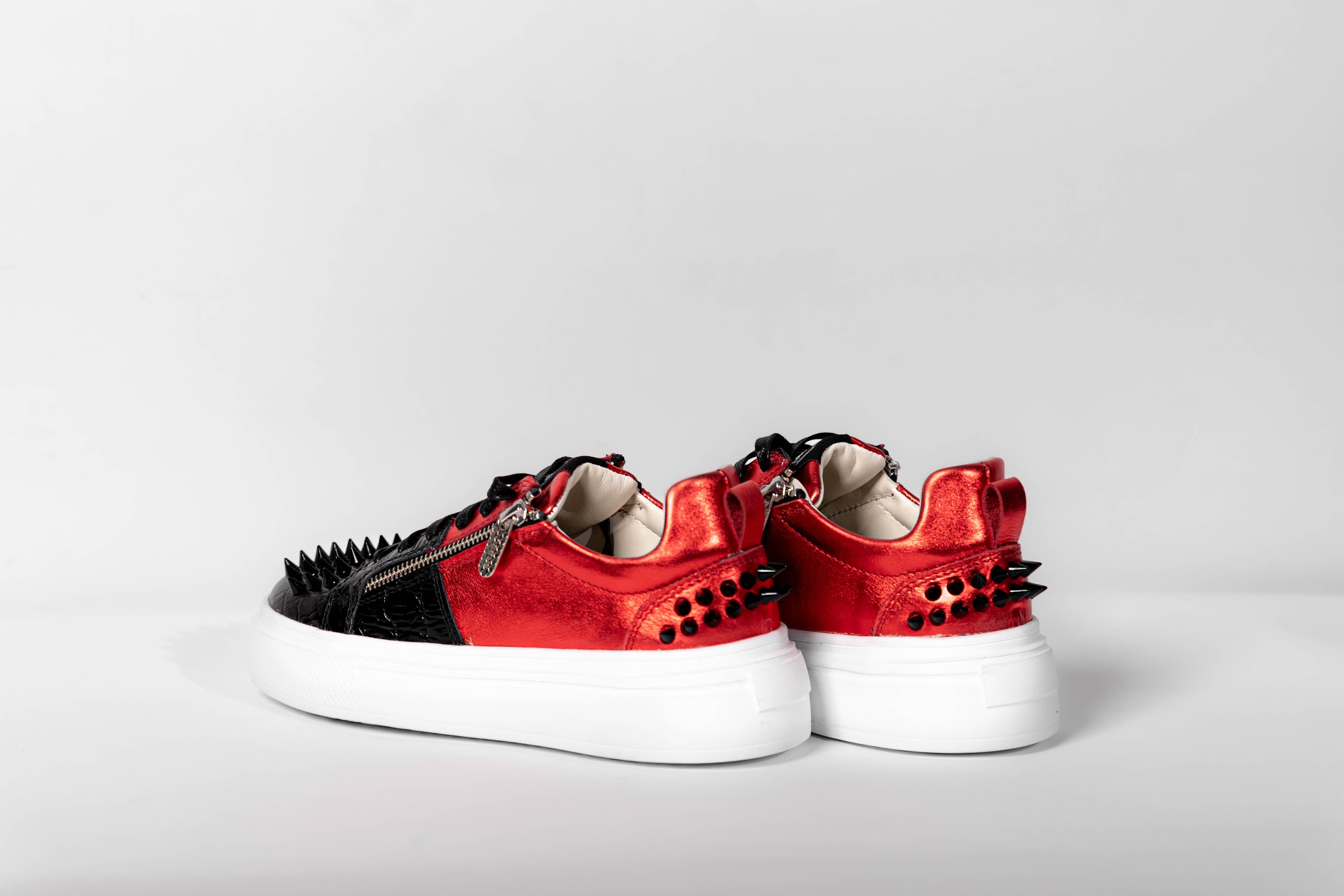 Accessorized with large black studs on front and back.